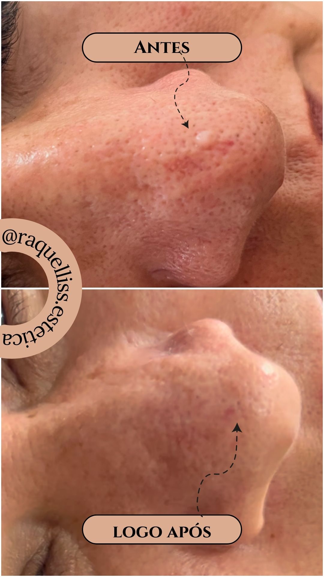 As crostas caem entre 5 e 10 dias, já permitindo observar melhora inicial do aspecto da pele.